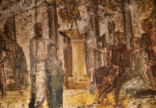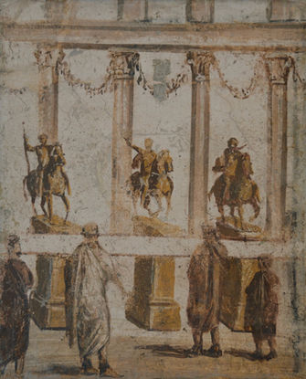 The walls were typically painted in shades of red and yellow, adorned with scenes from the Forum—children hiding behind columns, men playing board games, bartering, and admiring statues.